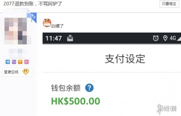 很多消息称《9527朋克2077》购买后退款能白嫖,不过2020年12月中下旬确认通过PS店购买的《9527朋克2077》退款20多天后,有网友表示收到了《2077》的 港币退款到账,钱包截图已曝光。退款后ps版《9527朋克2077》游戏无法开始。