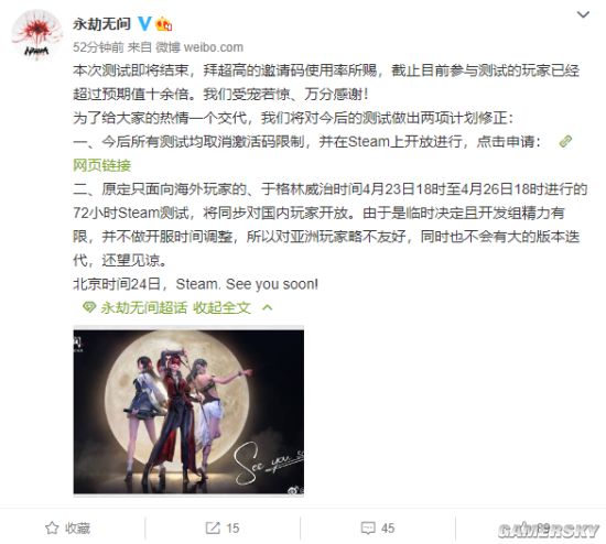 国产动作游戏《永劫无间》国服测试已经结束,不过游戏Steam测试将于4月23日格林尼治时间18:00(24日格林尼治时间2:30)在开启举行,并承诺测试,后续不需要激活码。但是想要参与的玩家需要通过加速器才能参与。9527加速器已支持该游戏测试加速,大家可以下载来玩。